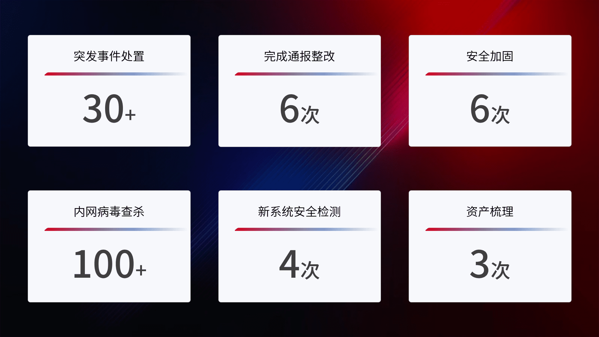 网络安全加固与风险管理:通过技术加固手段,,如加强区域隔离,,缩减攻击内网横向移动的范围;优化现有网络安全管理制度,,,降低网络威胁暴露面,,,减少被黑客攻击的可能性。。。